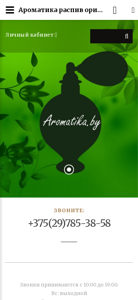 | AI-анализ | The website "Ароматика распив ориiginalной парфюмерии" (aromatika.by) is an e-commerce platform specialized in the sale of original and elite perfumes. The website provides customers an opportunity to purchase perfumes from mass market, luxury, and niche brands. Perfume sampling, or "raspiv perfume," is a simple and cost-effective way for customers to test their preferred fragrance before committing to a full bottle. The homepage includes a login form, a comparison feature, and an empty shopping cart. The main categories listed on the site include "Home," "About Us," "Catalog," "Brands," "Blog," "Payment and Delivery," and "Contacts." The site also features a contact number, operating hours, and a note that orders can be placed 24/7. The site's description tag mentions |
