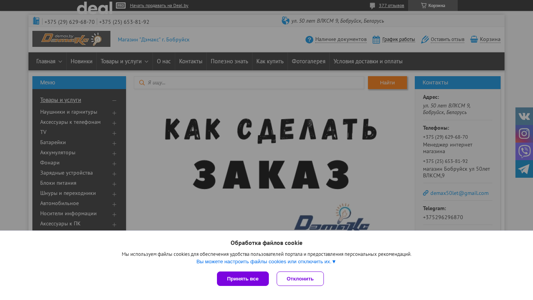 | AI-анализ | --- The web project "Магазин 'Дэмакс' - Товары с доставкой" is an e-commerce site selling various types of products with delivery in Belarus, reachable at +375 (29) 629-68-70. The main product categories include batteries, chargers, phone accessories, lighting, computer accessories, automotive accessories, and home appliances. The site has a physical location in Bobruisk, Belarus, and offers a manager for online sales. It has 377 customer reviews and is available for selling on Deal.by. The site's keywords are 'фонари', 'аккумуляторы', 'переходники', 'товары', 'пульты', 'usb', 'батарейки', 'все', 'аксессуары', ' |