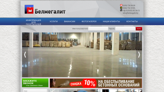| SEO-описание | ООО "Белмегалит" занимается устройством промышленных полимерных полов по всей территории Беларуси и Российской Федерации. |