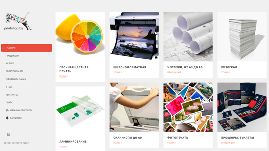 | SEO-описание | Печатный салон "Экспресс Принт", Минск. Срочная печать, сканирование, копирование, печать чертежей, широкоформатная печать, фотопечать, визитки, изготовление магнитов в Минске, дизайнерские услуги в Беларуси, биговка и фальцовка бумаги, переплёт документов, ламинирование в Минске, открытки и флаеры, фирменные бланки. |