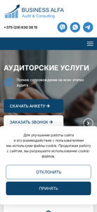 | AI-анализ | The website is that of Business Alpha, a reliable auditing company based in Minsk, Belarus. The company offers professional auditing, consulting, and financial support services throughout Belarus. The website provides extensive information on various auditing services including mandatory audits, initiatory audits, tax audits, and review of financial and accounting reporting. Additionally, the website offers financial consulting services such as setting up management accounting, analyzing financial and business activities, and consulting on accounting and taxes. The company also specializes in developing accounting policies for businesses, providing consultative services to legal entities, and supporting mergers and acquisitions. The website is available in English, Russian, and Belarusian languages. Services offered include auditing in accordance with International Financial Reporting Standards (IFRS), transfer pricing, risk management, and internal audit. The contact information for the company is provided on the website, including an email address and |