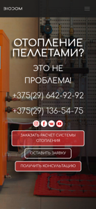 The portal is a Belarusian e-commerce website specializing in the sale of pellet stoves for heating purposes. The website offers pellet stoves for sale in Minsk, with the promise of the best and most energy-efficient models available, along with installation and mounting services. The website keywords reflect the focus on pellet stoves and their installation, as well as the location in Minsk and the company name "BIOTEP." The website also mentions the benefits of BIOTEP pellet stoves, such as easy installation and calibration, cost-effectiveness, reliability, and compliance with European standards. The website provides contact information for inquiries and offers a quote and consultation request form. The website offers several pellet stove models with varying heating capacities and efficiencies.