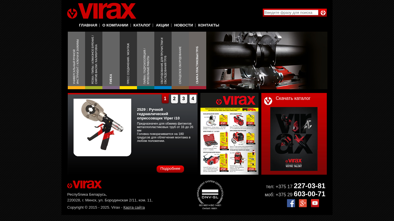 | Название / Заголовок | Строительное оборудование: сварочное, для инспекции и монтажа инженерных систем, для монтажа труб. Алмазный инструмент. | Профессиональное оборудование в Минске Virax-Minsk.by |