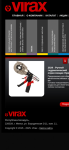 | AI-анализ | The web project "Virax-Minsk.by" is a professional equipment supplier in Minsk, Belarus, specializing in construction equipment, including welding and inspection tools, and tube mounting equipment. The website offers a catalog section with detailed information on various products such as a thermal camera Mini Visioval® for monitoring temperature variations in heating systems, a high-production cleaning station VIRAFAL® for mechanical and chemical cleaning, Viper® M21+ for hydraulic pressing tools, and a manual hydraulic pressing tool Viper i10 for metal-plastic pipe fittings. The website also provides contact information and allows users to download a catalog. The domain is virax.by. |