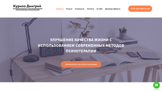 | AI-анализ | The web project "Kurilo Dmitry. Practical Psychologist — Psychological Consulting. Short-term Psychotherapy. Solutions to problems in relationships, love, sex, health, material well-being, work" is a website dedicated to providing psychological services and consulting. The site offers short-term psychotherapy and counseling using modern methods in the system of integral neuroprogramming by S.V. Kovalev. The author's methods, developed by Professor S.V. Kovalev, include the latest achievements in psychology and psychotherapy. The site offers help in areas such as personal development, improving self-esteem and confidence, and addressing health issues including depression and body image. The site also offers services for goal setting and achievement, relationship problems, and business and leadership coaching. The site includes a phone number for contact and information about the psychologist, Dmitry Kurilo. |