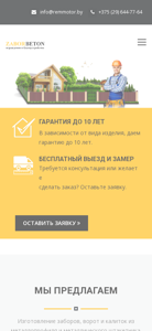 | AI-анализ | The website is an online resource for a company that specializes in the production and installation of concrete, metal profile, and metal fence panel barriers, as well as gates and grilles for landscaping purposes. The site offers a contact section and a guarantee of up to ten years on certain products. The company also provides consultations and accepts orders. The site is presented in the Belarusian language with the .BY top-level domain. The main menu includes sections for concrete barriers, metal profile barriers, gates and grilles, and contact information. The company's address and phone number are listed, and the site is copyrighted to OOO "РемЭлмаш". |