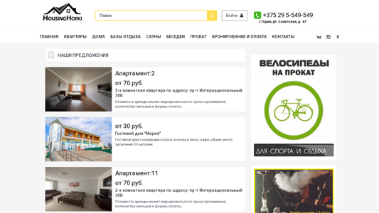 Ключевые слова | Для гостей и жителей города Горки предлагаем квартиры дома и комнаты в домах на любой вкус и кошелек. |