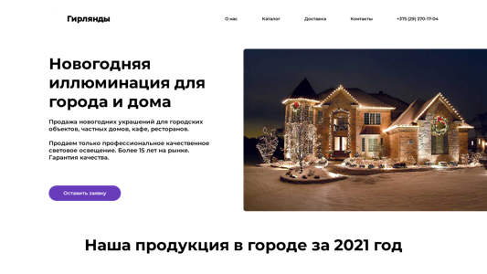 | AI-анализ | The website "Гирлянды.by" is an e-commerce platform specializing in the sale of professional-grade new year's illumination products for city and home use. The title of the website is "Гирлянды" (Girlands), and the description mentions the sale of various types of decorative lighting, including neon, dura-light, LED, and tree decorations. The website boasts a large assortment and guarantees quick delivery and product quality. The company has been in business for over 15 years. The contact information provided includes a phone number and address in Minsk, Belarus. |