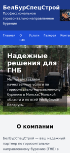 | AI-анализ | url: https://bbss.by/ This online resource, titled "ГНБ в Беларуси | БелБурСпецСтрой" (GNB in Belarus | BelBurSpecStroy), is a website dedicated to providing professional services related to horizontal directional drilling (HDD) or trenchless technology for the installation of various communication networks such as water, gas, cables, and sewage systems in Belarus. The company, BelBurSpecStroy, offers reliable solutions for HDD in cities like Minsk, Minsk region, Brest, Gomel, Vitsebsk, Grodno, and Mogilev, and throughout the entire Republic of Belarus. Founded in January 2008, BelBurSpecStroy combines international expertise in HDD technology with high standards of quality |