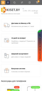 | SEO-описание | KISET.BY - интернет магазин аксессуаров для телефон, планшетов и ноутбуков. Полное описание товаров, характеристики, цены и отзывы. Доставка 🚚 по всей Беларуси. Скидки %, бонусы 📞. KISET.BY - все для вашего гаджета! |