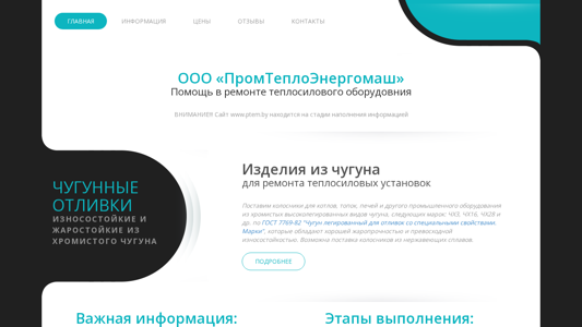 | AI-анализ | The web project "ООО "ПромТеплоЭнергомаш" (PTEM) specializes in the sale of heat-resistant cast iron columns for boilers, furnaces, and other industrial equipment using chromium-rich, high-alloyed types of cast iron. The product range includes columns for boilers, furnaces, and other industrial equipment, made from chrome-rich high-alloyed cast iron, such as CH3, CH16, CH28, and others, according to the GOST 7769-82 standard for "Forged cast iron with special properties." These cast iron products have excellent heat resistance and superior wear resistance. The minimum order is 300 kg, and the lead time is 30 working days, with a tolerance of up to 5% on the order quantity. Payment terms are cash on delivery, |