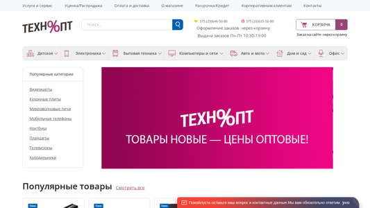 | AI-анализ | The website is an e-commerce store named Tehnoopt.by, selling a variety of electronics, computers, computer components, mobile phones, and household appliances. The store offers free shipping and competitive prices, as well as credit options. The product range includes kitchen appliances, such as multi-cookers, refrigerators, vacuum cleaners, and various kitchenware. The website also sells office equipment, home and garden items, services, and discounted items. The store caters to both individual and corporate clients. |