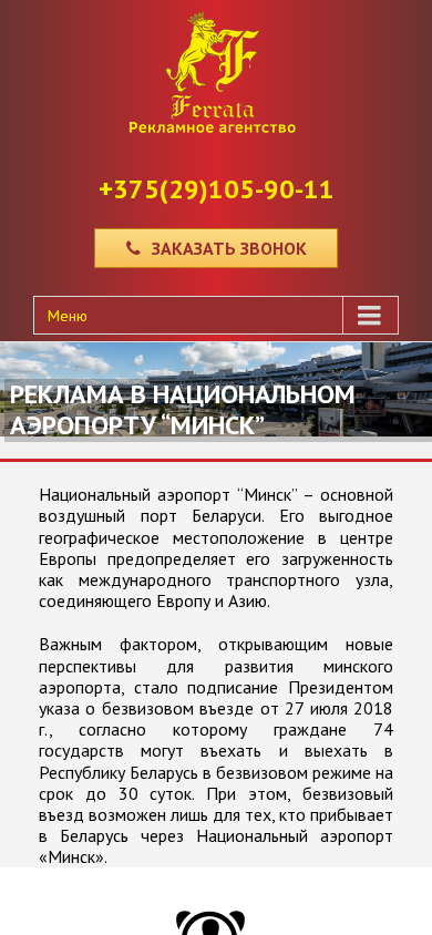 | Название / Заголовок | Реклама в Национальном аэропорту Минск. Рекламное агентство Феррата |
