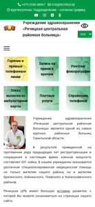 | AI-анализ | --- This online resource belongs to the "Речицкая центральная районная больница" (Rechitsa Central District Hospital) in Belarus. The website provides information on the hospital's services, including its various departments, such as the polyclinic and laboratory, and contact information, including a phone number and email address. Keywords associated with the site include 'information', 'services', 'hospital', 'healthcare', and 'medical'. The most frequently used words on the site are 'отделение' (department), 'поликлиника' (polyclinic), 'услуги' (services), 'информация' (information), and 'районная' (district). The site is available in several languages, including Russian, Belarusian, and English. |