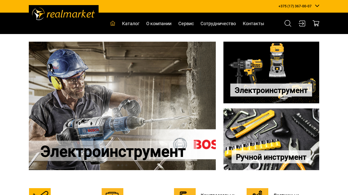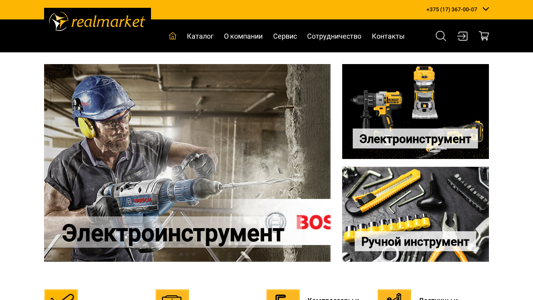 | AI-анализ | The website 'Realmarket.by' is an online retail store offering a wide range of products including manual and electric tools, measuring instruments, construction equipment, heating and air conditioning equipment, and accessories. The homepage displays various product categories such as 'Manual Tools', 'Measuring Instruments', 'Electric Tools', 'Construction Equipment', and 'New Products'. Users can browse through the catalog, register, log in, or contact the company for more information. The website also provides a search function and filter options to help users find specific products. Some products listed on the homepage include an electric drill, a welding torch, and various types of batteries and chargers. |