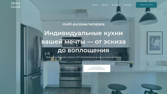 | SEO-описание | Multi-purpose Template Индивидуальные кухни вашей мечты — от эскиза до воплощения Бесплатный дизайн-проект и 3D-визуализация до заключения договора Рассчитат... |