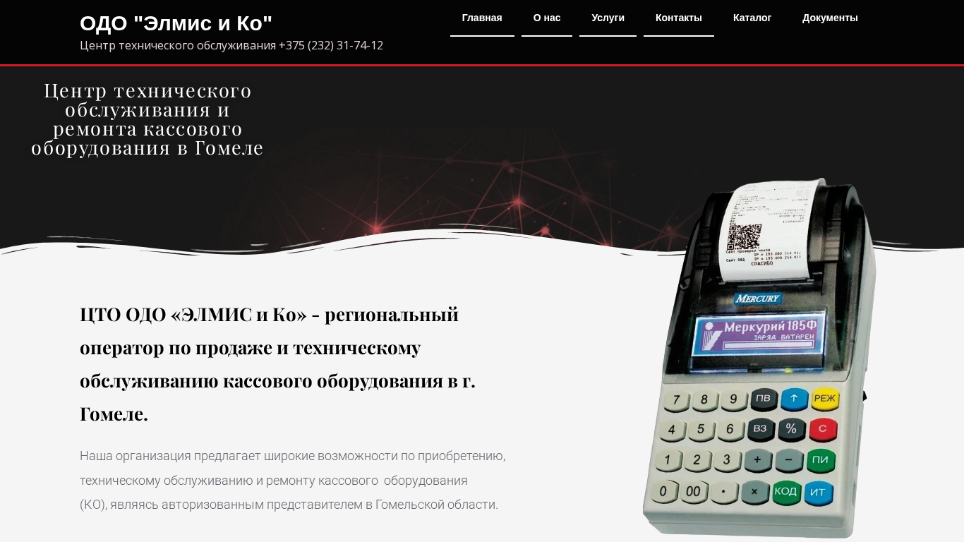 | SEO-описание | Центр технического обслуживания ЦТО ОДО «ЭЛМИС и Ко» - Региональный оператор по продаже и техническому обслуживанию кассового оборудования в г. Гомеле. |