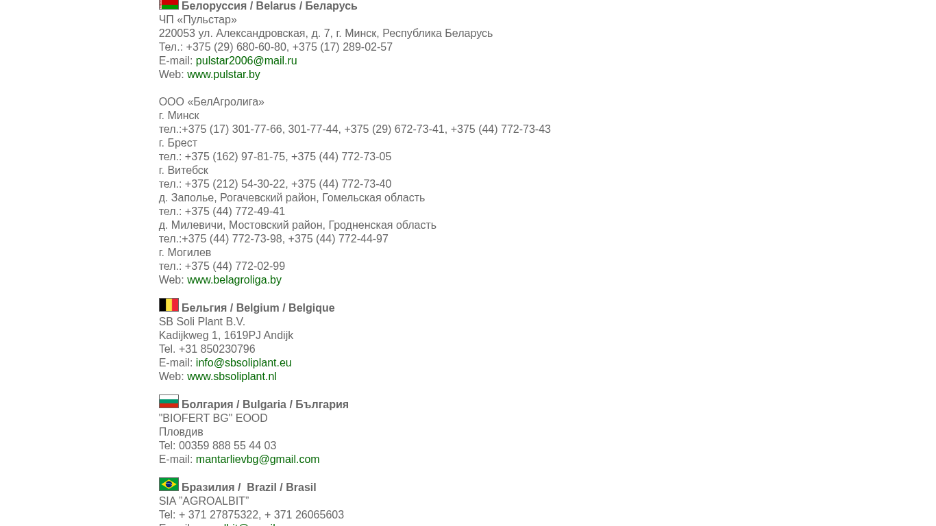 | AI-анализ | This website is for Albit, a plant growth promoter of biological origin. The site provides information on Albit's distributors in various countries, including Russia, Australia, Austria, Belarus, Belgium, Bulgaria, and Brazil. Users can find contact details such as phone numbers, emails, and websites for these distributors. The website also includes a document without a name, possibly containing additional information. The site's main sections include Home, general information, how it works, anti-stress, yield increase, disease control, and how to apply. There are also sections for maximum effect of pesticides and contacts. The top words on the website include 'e-mail', 'tel', 'web', 'www', 'com', 'albit', 'mayline', 'info', '375', 'тел', 'sbsoliplant', 'gmail', '777', 'the', |