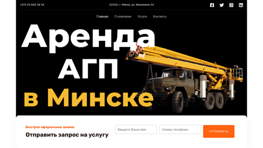 | AI-анализ | --- This website, titled "Home" on alivan.by, specializes in renting hydraulic platforms for various height tasks, including construction, installation, repair, and more. The company offers high-quality equipment suited for different projects and prides itself on stability, reliability, and promptness. All machines undergo regular technical inspections and maintenance, ensuring their functionality and safety. The company caters to both individuals and corporations, providing flexible rental conditions and individualized customer service. Their professional team is always ready to advise and help choose the appropriate machinery for specific tasks. Alivan.by has been in business for several years, with a substantial inventory of machines and a high number of satisfied clients. They offer services such as renting the VS-18T-01, a telescopic auto-lift suitable for heights up to 5 floors, and the VS-222- |