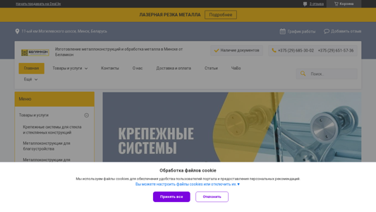 | AI-анализ | The website is for a company named Belamkon based in Minsk, Belarus, specializing in the production and sale of metal structures for construction and outdoor advertising, as well as glass fixing hardware and metal framing for furniture. The site offers laser cutting of metal, fretwork, and turning services. Custom and non-standard metal structures, as well as metalworking services, are also available. The site lists contact information for ordering and delivery, and includes a portfolio of completed projects. The site is in Belarusian language and has a .BY domain. |