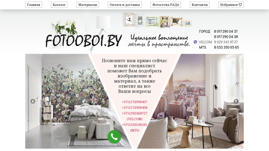 | AI-анализ | --- The website fotooboi.by offers photo wallpapers for various applications, including walls, glass, DSP, and tiles. They use only roll materials of various widths and textures, and have developed specialized techniques for each material to ensure a good result. The price depends on the chosen material rather than the image. The company works with European producers such as Neshen, Solo, and Veika, known for their high density and excellent color transfer. The website includes a catalog of images, design wallpapers, instructions for application, and materials for photo wallpapers. The contact information is provided for the city, as well as for VELCOM, MTS, and the company's email and Skype. |