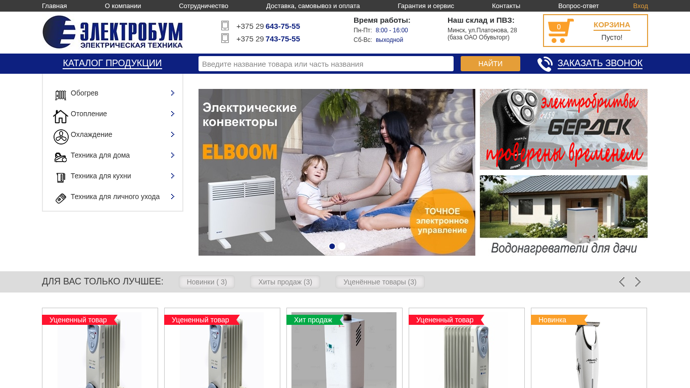 Название / Заголовок | Интернет-магазин компании Электробум в Минске / Производство и поставки бытовой и климатической техники |