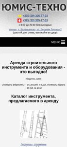 SEO-описание | «ЮМИС-ТЕХНО» предлагает взять в аренду строительный инструмент и оборудование по выгодным ценам! ☎ +375 (29) 305-77-03. |