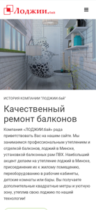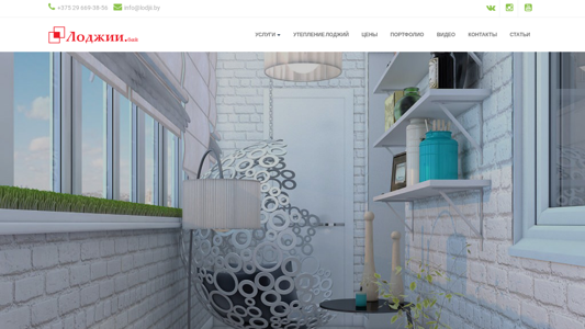| AI-анализ | This online resource specializes in insulation and decoration of balconies and loggias in Minsk. The website offers high-quality work at affordable prices and guarantees completed jobs. Free measurement is provided, and potential customers can contact the company at +375 29 669 38 56 or via email at info@lodjii.by. The website's top words include "loggias," "insulation," and "balconies," and the company provides a range of services such as insulation with polyurethane foam, balcony and loggia decoration, window glazing for balconies and loggias, and the integration of loggias with living spaces. Electrical installation work and the laying of blocks and beams are also offered. The website features a portfolio, videos, and contacts, and the company promises that "there will be |