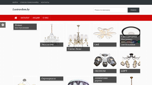 | AI-анализ | --- The website "Lustravdom.by" is an online store specializing in lighting fixtures. It offers various types of lamps including pendant lights, chandeliers, table lamps, floor lamps, and outdoor lighting. The store also sells lighting components and Veneto Luce products. The store caters to various styles such as modern, exclusive, and economical, and provides a section for new arrivals. The website includes a contacts page and a wish list feature. The top words on the website are 'lustra' (meaning chandelier in Belarusian), 'econom', 'modern', 'loft', 'elit', 'podvesnye' (pendant), 'grodno', 'khristal' (crystal), 'nastennopotolchnye' (wall-mounted), and 'svetilniki |