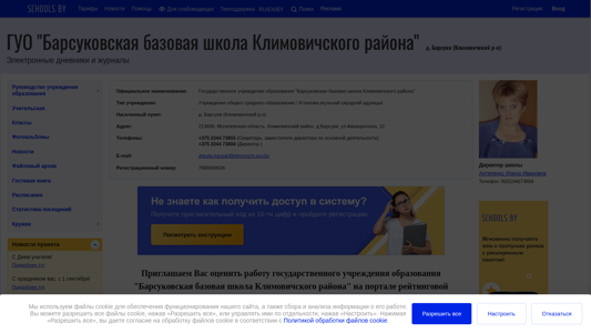 | AI-анализ | The website "This website is for the Baranavichy District Base School, located in Belarus. It uses cookies for site functionality and data collection and analysis. Users can allow or manage cookies individually or all at once through the site's cookie policy. The site's color scheme is white with black text and images are turned off. The site's title is 'Baranavichy District Base School' and its domain is klimbarsuki.schools.by." |
