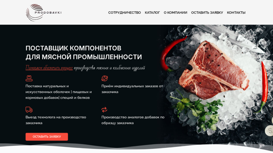 | AI-анализ | --- This website is titled "Пищевая промышленность" (Food Industry) and is a catalog for suppliers of components for the meat processing industry. The description mentions cooperation, the company, leaving a request, contacts, and a supplier of components for meat processing. The website assists in ensuring the production process of meat and sausage products by providing natural and artificial casings, food and feed additives, spices, and proteins. It accepts individual orders from clients and sends a technologist to the production site. The catalog includes sections for natural casings, artificial casings, food additives, feed additives, spices, and proteins. Natural casings are used for various types of sausages, while artificial casings provide form and protection. Food additives help adjust moisture, texture, color, and water retention, as well as adding flavors and enhancing meat |