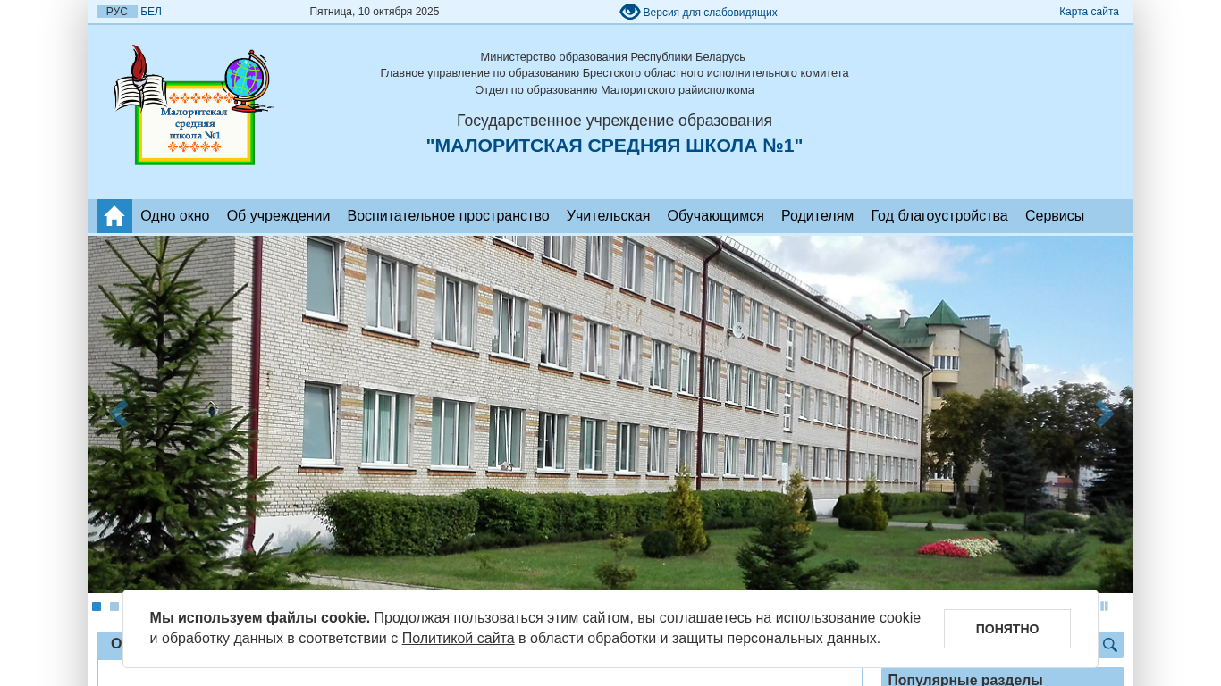 | Название / Заголовок | Малоритская средняя школа №1 |
