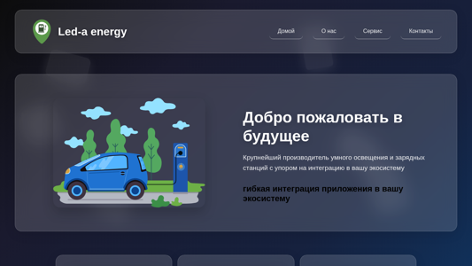 | AI-анализ | The website Led-a tech is dedicated to energy solutions with a focus on smart lighting and charging stations. It offers a range of GB/T certified products such as TCDZ-DC1.00 series for DC charging and TZD-DC1000 series for AC charging. Users can find detailed information on various models including their power ratings and connectivity options. The website also provides information on the company and its services, allowing visitors to learn more about Led-a and its offerings. |