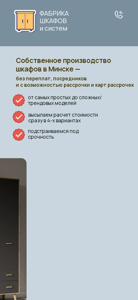 | SEO-описание | Фабрика в Минске производит шкафы под заказ: купе, встроенные, угловые. Расчёт за 15 минут. Сборка и доставка по городу и области. |