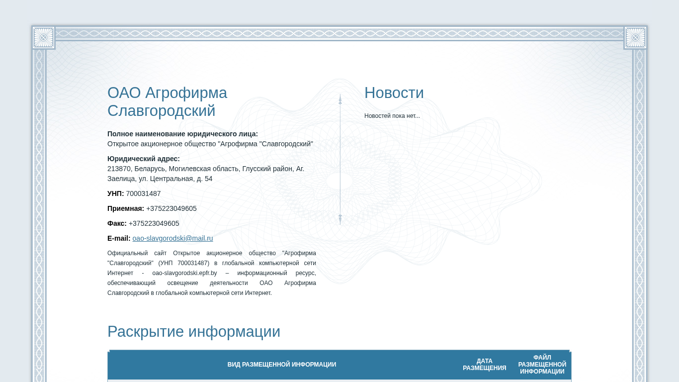 | Название / Заголовок | Агрофирма Славгородский ОАО |