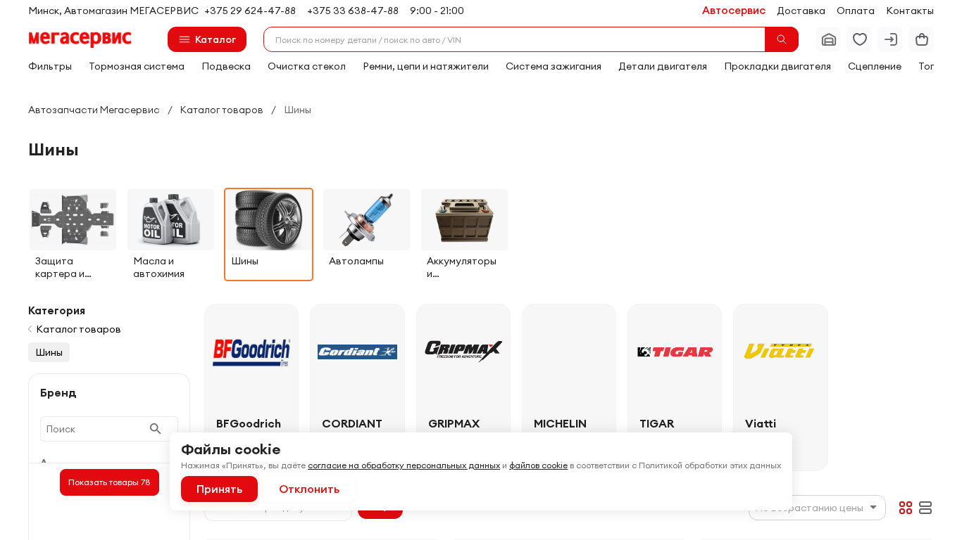 | SEO-описание | Купить автомобильные Шины ⭐ Лучшие цены ⭐ Большой выбор Резины ⭕️ Доставка по Минску и РБ ⭐ Гарантия |