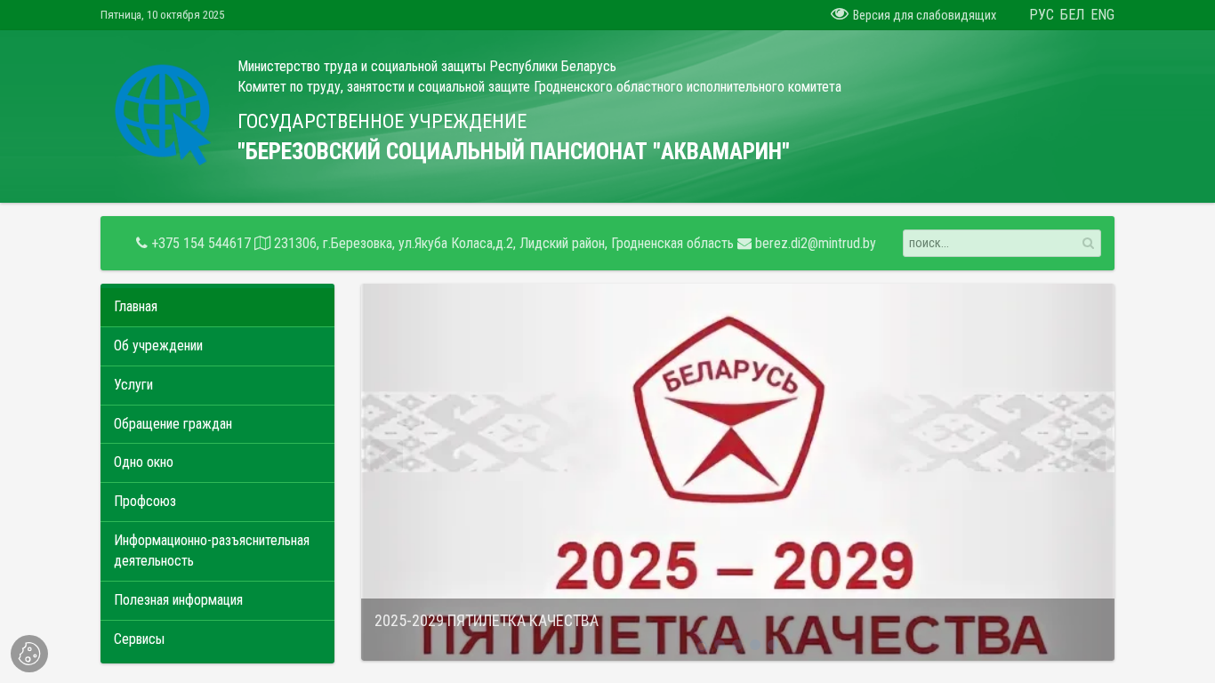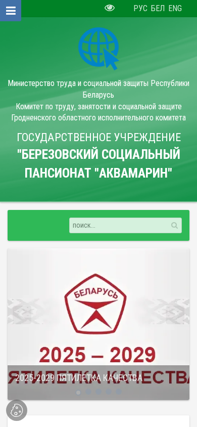 | AI-анализ | The website is the official portal for the Berezovsky Social Boarding House "Aquamarin" operated by the Ministry of Labor and Social Protection of the Republic of Belarus. The website provides information about the boarding house, its history, news, and various events. It marks the year 2025 as the year of renovation and modern design for the institution, and highlights its five-year quality improvement program and the 80th anniversary of Victory in the Great Patriotic War. The website includes sections for local and regional news, news from the industry, and special days such as the Day of the People's Unity, the Day of the Healthcare Worker, and the Day of the Worker in Physical Culture and Sports. The domain name is berezovkaakvamarin.by. |