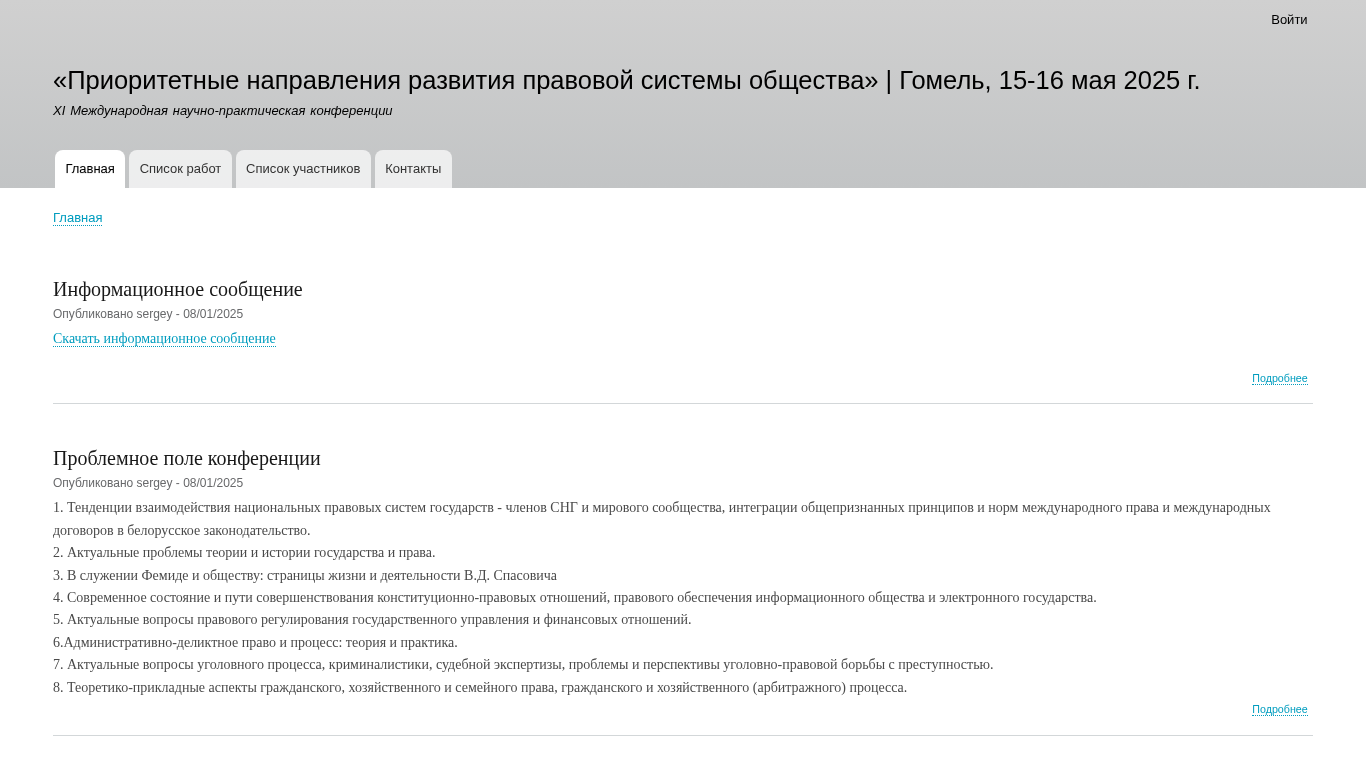 | Название / Заголовок | Главная | «Приоритетные направления развития правовой системы общества» | Гомель, 15-16 мая 2025 г. |