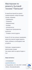 Название / Заголовок | Мастерская по ремонту бытовой техники "Паяльник" |