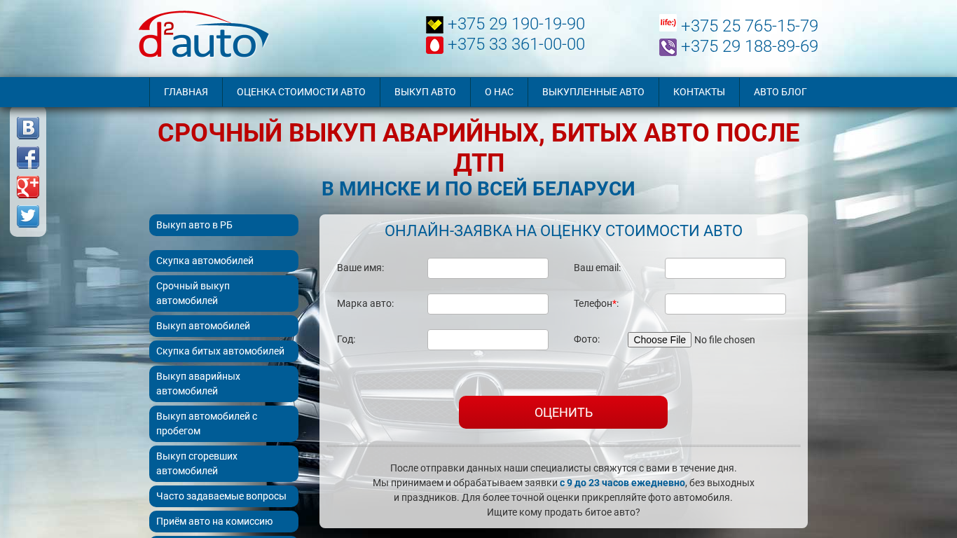 Название / Заголовок | Выкуп аварийных и битых авто после ДТП-D2Auto |