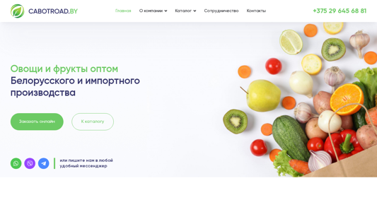 | SEO-описание | ООО "Кэбот Роуд" - фрукты овощи оптом! №❶ поставщик на территории Беларусь. ОПТОВЫЕ ЦЕНЫ. Предоставляем скидок для больших заказов. ➤ Звоните +375 29 624 64 79 |