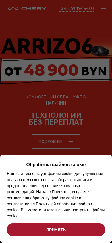 | AI-анализ | The website is an official dealership for Chery cars in Belarus. Visitors can purchase new Chery models from the dealership, with prices listed for the ARRIZO 6, ARRIZO 8, TIGGO 4 PRO, and TIGGO 7 PRO MAX. The ARRIZO 6 is available for 48,900 BYN and comes equipped with a 1.5-liter gasoline engine, a monochrome instrument panel, and a full package of heating options. The ARRIZO 8, priced at 74,900 BYN, features a more powerful 1.6TGDI engine, a 12.3-inch digital dashboard, and a seven-year warranty or 150,000 km mileage. The TIGGO 4 PRO is offered at 61 |
