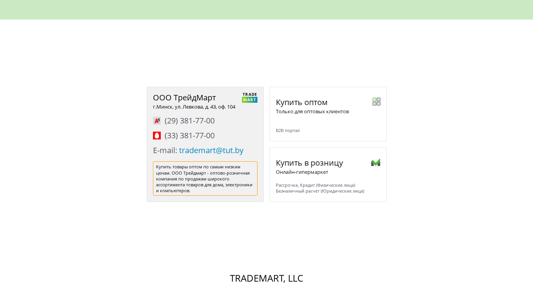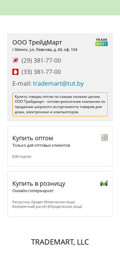 | Название / Заголовок | ТрейдМарт ООО - широкий ассортимент товаров и оптом и в розницу. |