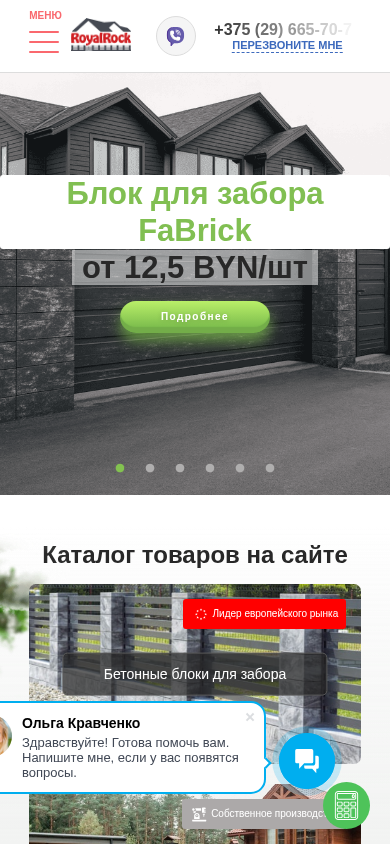 | AI-анализ | --- This website is for a center called 'Центр комплектации заборов' (Center for Fencing Completion) in Belarus, selling and installing various types of fences under the name 'РойалРок' (RoyalRock). The company offers a large selection of fences from Poland and their components, with financing options and delivery. The contact number is provided: +375 (29) 665-70-70. The website includes a catalog of various fence types such as concrete blocks, metal fences, aluminum fences, filling materials, gates, automation and accessories, and decorative paving stones. The company also offers a collection of 'Лофт' and 'Рубико' decorative paving stones and facade bricks in new colors. The website provides instructions and a portfolio of the company. |