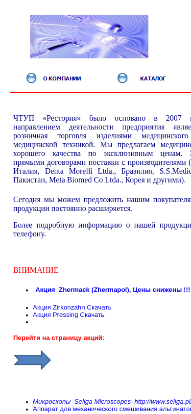 | SEO-описание | РЕСТОРИЯ - оптовая и розничная торговля изделиями медицинского назначения и медицинской техникой |