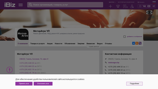 | AI-анализ | This online resource, MotorAgro CHP, is a business located in the city of Homel, Belarus, with the address Baeva street, building 10, office 8. The company specializes in the repair of engines, turbochargers, transmission, cylinder bores, and fuel pumps. The website provides contact information, including several phone numbers and a fax number, as well as a map to facilitate visiting the business in person. The business hours are listed as Monday to Friday from 9:00 AM to 6:00 PM, with no operating hours on Saturdays and Sundays. The company falls under the categories of technical service stations and can also be found in the category of technical service stations in Homel. |