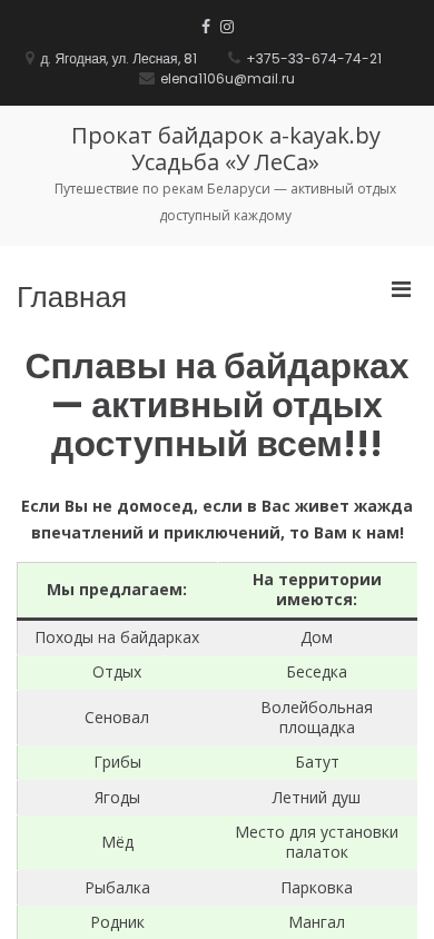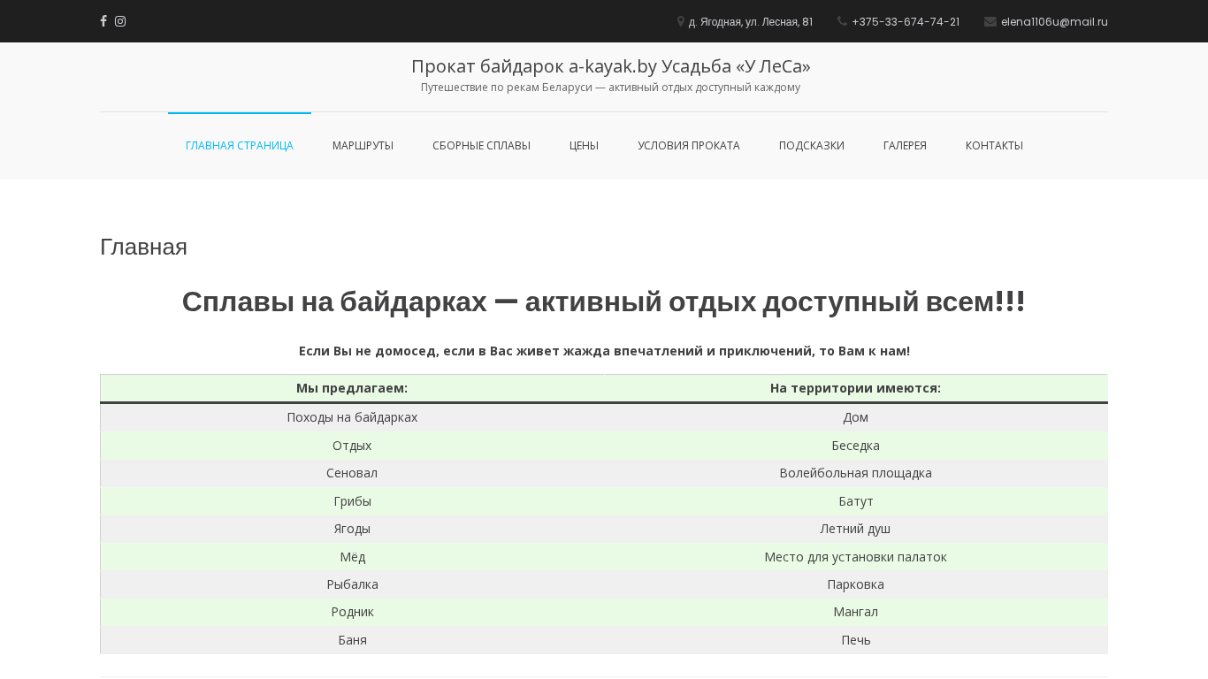 Название / Заголовок | Прокат байдарок a-kayak.by Усадьба «У ЛеСа» |