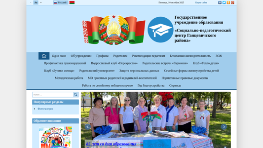 | AI-анализ | The portal spc.gancevichi.edu.by is the website of the State Educational Institution "Social-Pedagogical Center of Ganevichi District". The site offers information about the center, its mission, and various services for children, parents, and educators. Key topics include safe living conditions, prevention of delinquency, parent meetings, clubs for children and teenagers, and methodological work for adoptive parents and foster parents. The site also features legal documents, information on family forms of childcare, and various events such as festivals and parent meetings. Additionally, the site provides information on the history of the district and its achievements, as well as announcements and a contact page. The director of the center is Galina Nikolaevna Bruy. The site operates Monday to Friday from 8:00 to 17:00, with a lunch break from |