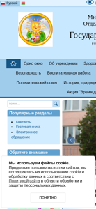 | AI-анализ | This website is a government educational institution website in Belarus with the title "Детский сад д.Хомск" (Children's Garden of Homsk) and description "Государственное учреждение образования 'Детский сад аг.Хомск'" (State Educational Institution "Children's Garden of Homsk"). The keywords and top_words indicate that the website primarily focuses on the children's garden and its offerings, including education, news, and contacts. The website uses cookies and is available in both Russian and an undisclosed alternative language. The website includes sections on the institution's history, mission, and services, as well as contact information, popular topics, and a poll for user feedback. The website was opened in 1983 and has a project capacity of 110 students, with an address in the agro- |