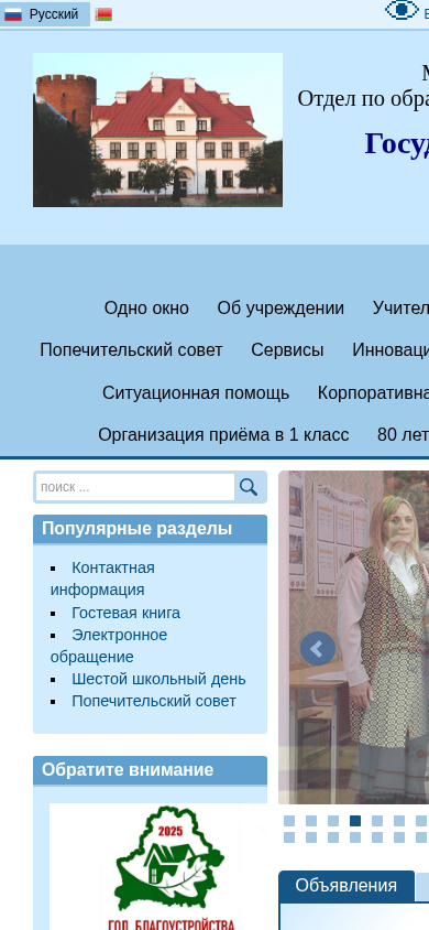 | AI-анализ | The portal gymn.kamenec.edu.by is the official website of the Gymnasium of the city of Kameneц, Belarus. It provides information about the institution, its structure, educational programs, and services. The website is operated by the Ministry of Education of the Republic of Belarus and the Kamenetsky District Executive Committee. The main sections of the site include 'About the Institution', 'Teaching Staff', 'Parents', 'Services', and 'Innovative Activities'. Users can find news, contacts, and information about enrollment and events. The website is available in both Russian and Belarusian languages. The design is standard with a clear layout and easy navigation. The site uses a medium font size and standard inter-character spacing. Images are turned off by default, with an option to switch to grayscale. The site includes accessibility features for vis |